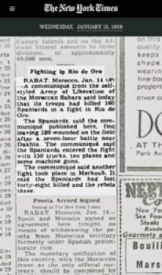 نيويورك تايمز توثق معركة العركوب سنة 1958 بواد الذهب: دليل تاريخي دامغ على الكفاح المغربي لتحرير الصحراء قبل المسيرة الخضراء